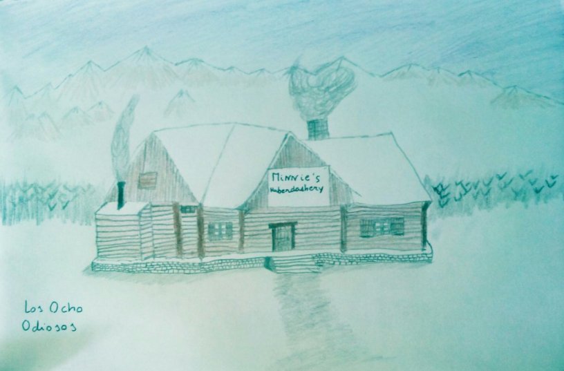 Uno se va a preparar un café, el otro coge unos caramelos de la repisa, otros dos se ponen a hablar de sus cosas. Este tipo de detalles dan un realismo palpable que te hace convertirte en uno más de los clientes de la Mercería de Minnie. Un personaje silencioso que solo observa pero está ahí, junto al resto. Esto en parte es gracias al tipo de fotografía usada que da un amplio margen de campo de visión haciendo que en una misma toma dónde solo podrías encuadrar la cara del protagonista tengas a ambos lados toda la Mercería para verla sin complicaciones. Lo ves todo. Todo lo que Tarantino quiere que veas y es que el director a pesar de dar toda esa sensación de amplitud, de: Puedes ver donde quieras, dirige mucho al espectador.