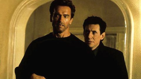 El problema viene que sigue siendo Arnold así que vamos a meter acción cuándo el director no parece estar cómodo con ella. Es imposible que le gustase la idea de las escenas de acción cuándo empieza con Arnold colgado de un helicóptero como si fuera Pinocho y tirándolo durante minuto y medio de un edificio de diez plantas. Es acción metida con calzador.