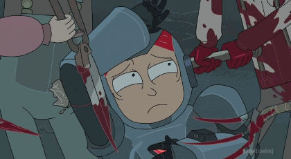 En un planeta, donde se han creído la película de Ethan Hawke y se dedican a darse matarile una vez al año, Morty no es capaz de comprenderlo. Rick tampoco, pero por motivos diferentes. A Rick le parece absurdo y quiere verlo por curiosidad, pero a Morty le desagrada, le repugna que gente a la que ha visto tan buena se conviertan en asesinos inmisericordes. Le enferma la Purga porque no le entra en la cabeza que una buena persona guarde ese monstruo, y no le tiembla el pulso para salvar a una chica de ser purgada. De nuevo es el corazón de Morty quien habla, no quiere analizar como funcionan las cosas en esa sociedad, ni quiere ni tiene la capacidad para hacerlo.