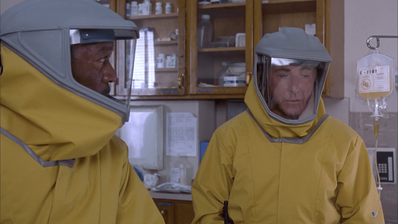 Nuestro protagonista, Dustin «Hook» Hoffman, le da igual lo que le digan y se va a investigar la nueva enfermedad con su exmujer porque cree que se va a descontrolar. Y lo hace, el virus de contacto muta a ser aéreo, ahora es como la gripe pero matando más.